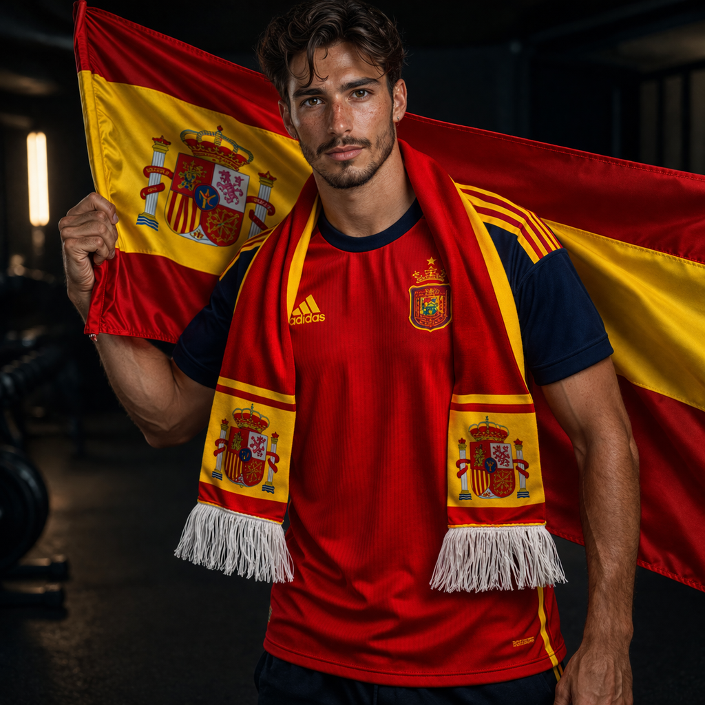 Composto por:  1 Camisola Espanha 2026 | 1 Cachecol Premium Espanha | 1 Bandeira Nacional Espanha