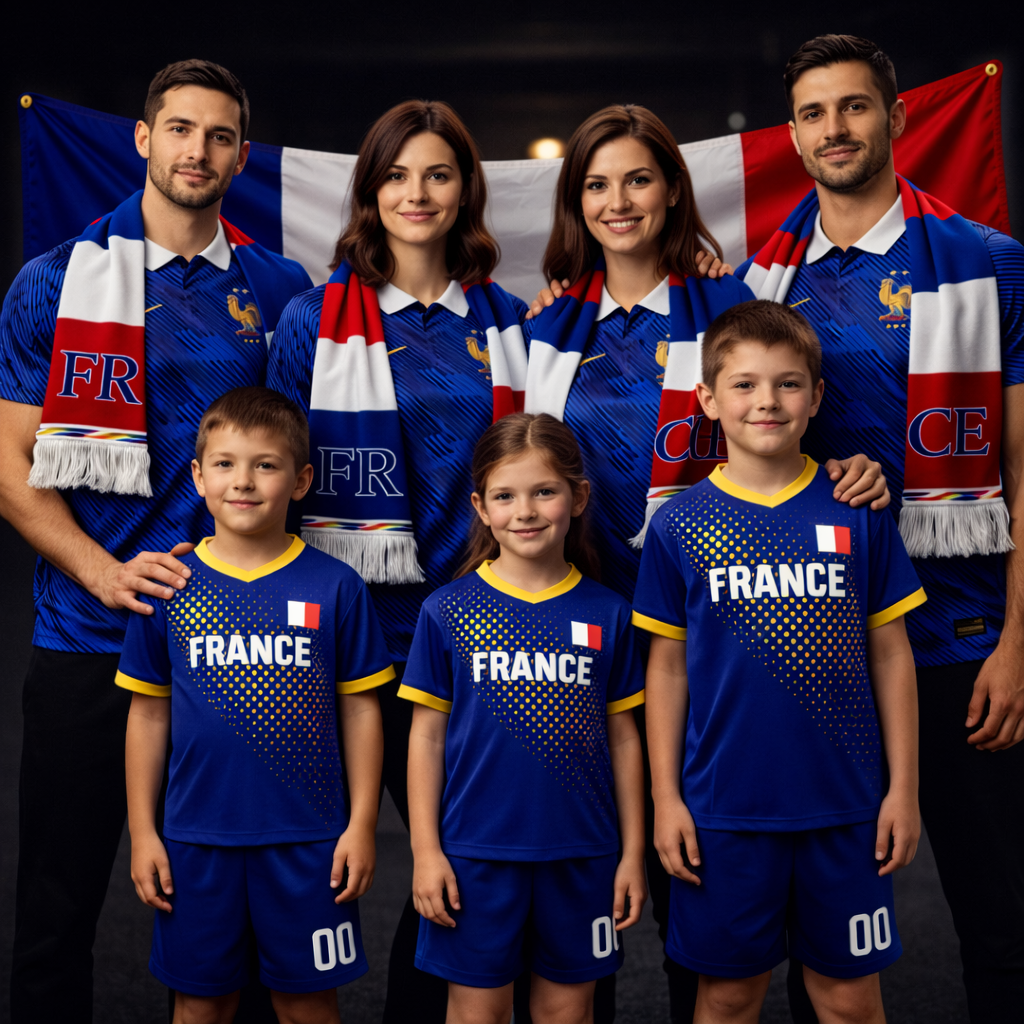 Este kit tribo captura a essência da Seleção Francesa para famílias grandes ou grupos de amigos. Vistam as camisolas, enrolem os cachecóis, ponham os equipamentos nos mais pequenos e hasteiem a bandeira juntos – sintam que estão unidos como uma verdadeira tribo de torcedores. No estádio em multidão, no churrasco a vibrar ou em casa a torcer pelo próximo golo histórico. Porque apoiar França não é só cultura… é uma emoção coletiva que une o pessoal todo e dura para sempre.
